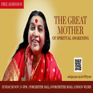 Millions of people worldwide have experienced a tremendous positive transformation in their lives as a result of Shri Mataji’s gift to humanity, and we invite you too to try this experience for yourself on Sunday 26 November at 3pm in Porchester Hall, London.